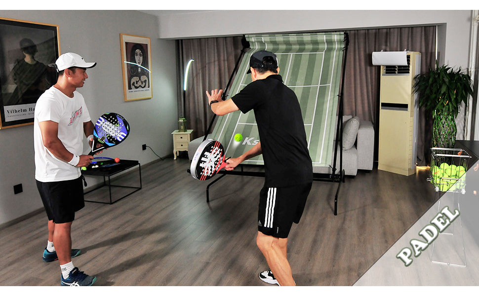 - Emulating a real court, you can hit a large variety of shots of forehand, the backhand with full impact without toppling the net and more advanced players can practice the spins shots of each racket sport.